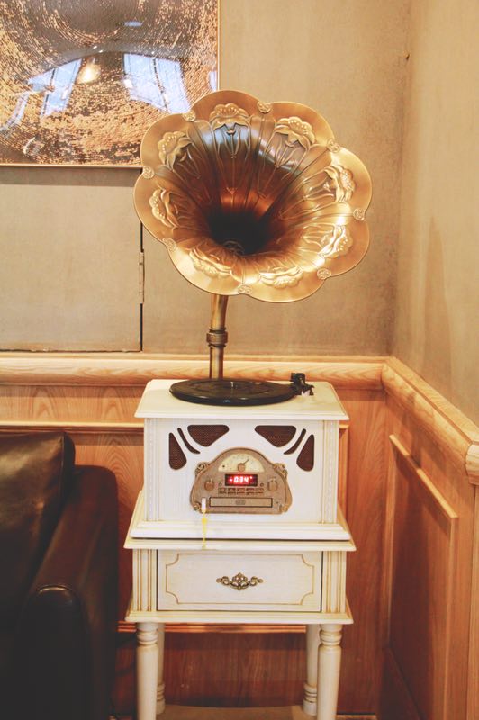 要一杯咖啡,意式的或手沖的,甚至一杯熱飲也可以,聽著老式留聲機(jī)里緩緩流淌出的民國老曲,在一張椅子上坐下。陽光從身后的窗戶投射進(jìn)來,光線朦朦朧朧,那情景,那情調(diào),讓人頓時有了一種真切的穿越之感——